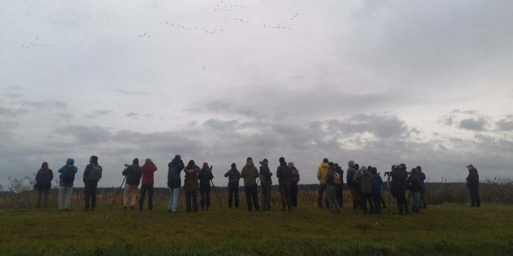 Rund 30 Ornitholog*innen haben sich vom 3. bis 5. Oktober am Galenbecker See zusammengefunden. Durch die großzügige Förderung der OAMV waren viele Student*innen aus Greifswald und Neubrandenburg dabei. Von „blutigen“ Anfängern bis zu professionellen Ornitholog*innen war alles dabei und es gab einen regen Austausch.